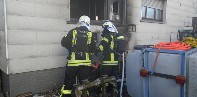 Schon auf der Anfahrt wurde das Alarmstichwort auf F2Y (Feuer mit Menschenleben in Gefahr) erhöht und ein Vollalarm für die Ober-Rodener Wehr ausgelöst. Die Flammen des hinter dem Haus brennendern Holzstapels hatten bereits auf das Gebäude übergegriffen und eine Person befand sich noch in der betreffenden Wohnung. Beim Eintreffen der ersten Kräfte war die Person bereits durch einen Familienangehörigen ins Freie gebracht worden. Beide Personen wurden vom Rettungsdienst betreut. Durch die Feuerwehr wurde der Brand schnell abgelöscht, da sich aber das Feuer hinter der Fassade ausgebreitet hatte, mussten Teile der Fassade entfernt werden. Es handelte sich hierbei um Asbestplatten, welche unter Atemschutz, bzw mit Filtermasken entfernt und verpackt wurden. Um kurz nach 20:00 Uhr war der Einsatz beendet und die 28 ausgerückten Kräfte konnten wieder die Rückfahrt zur Wache antreten.