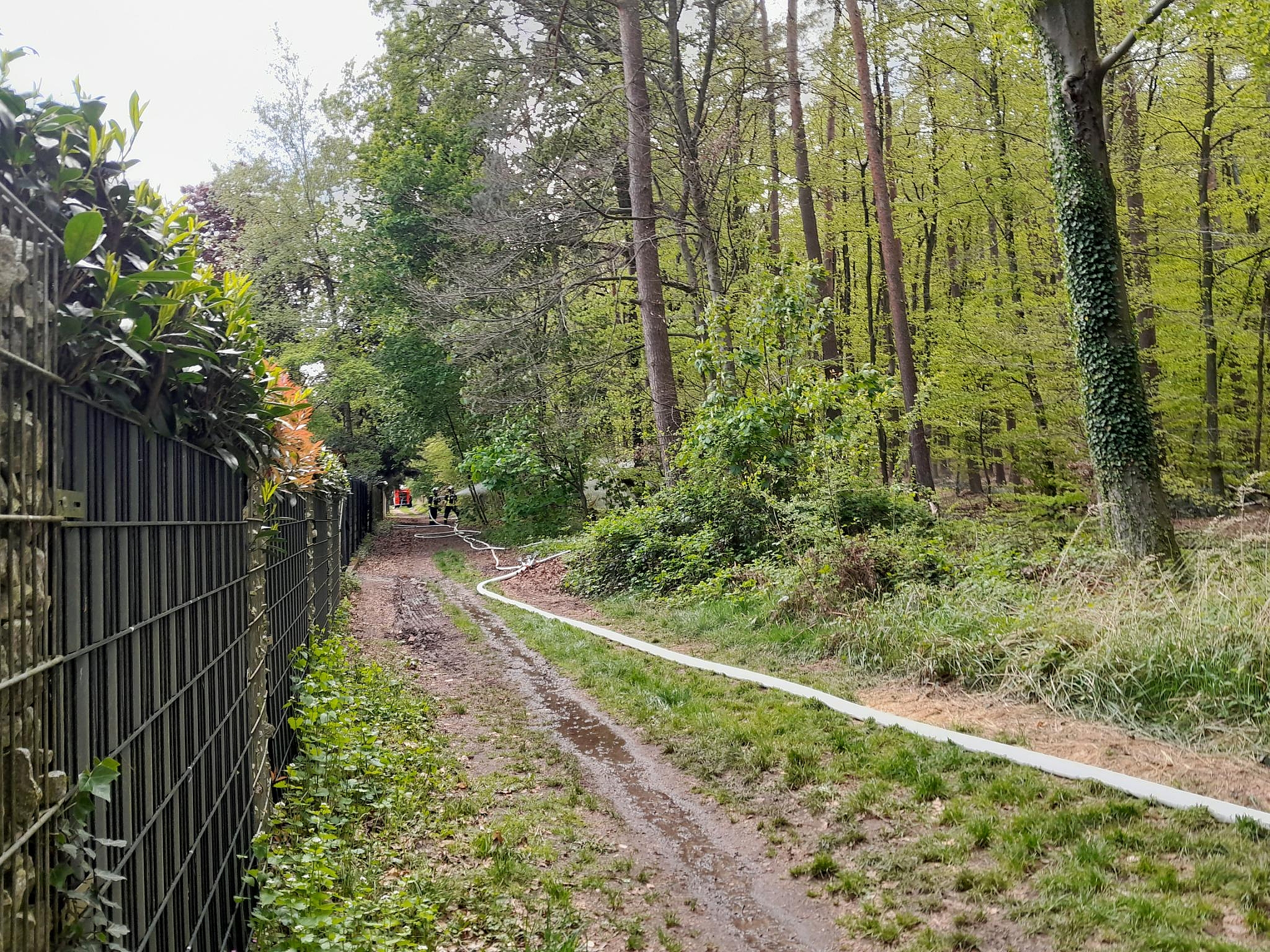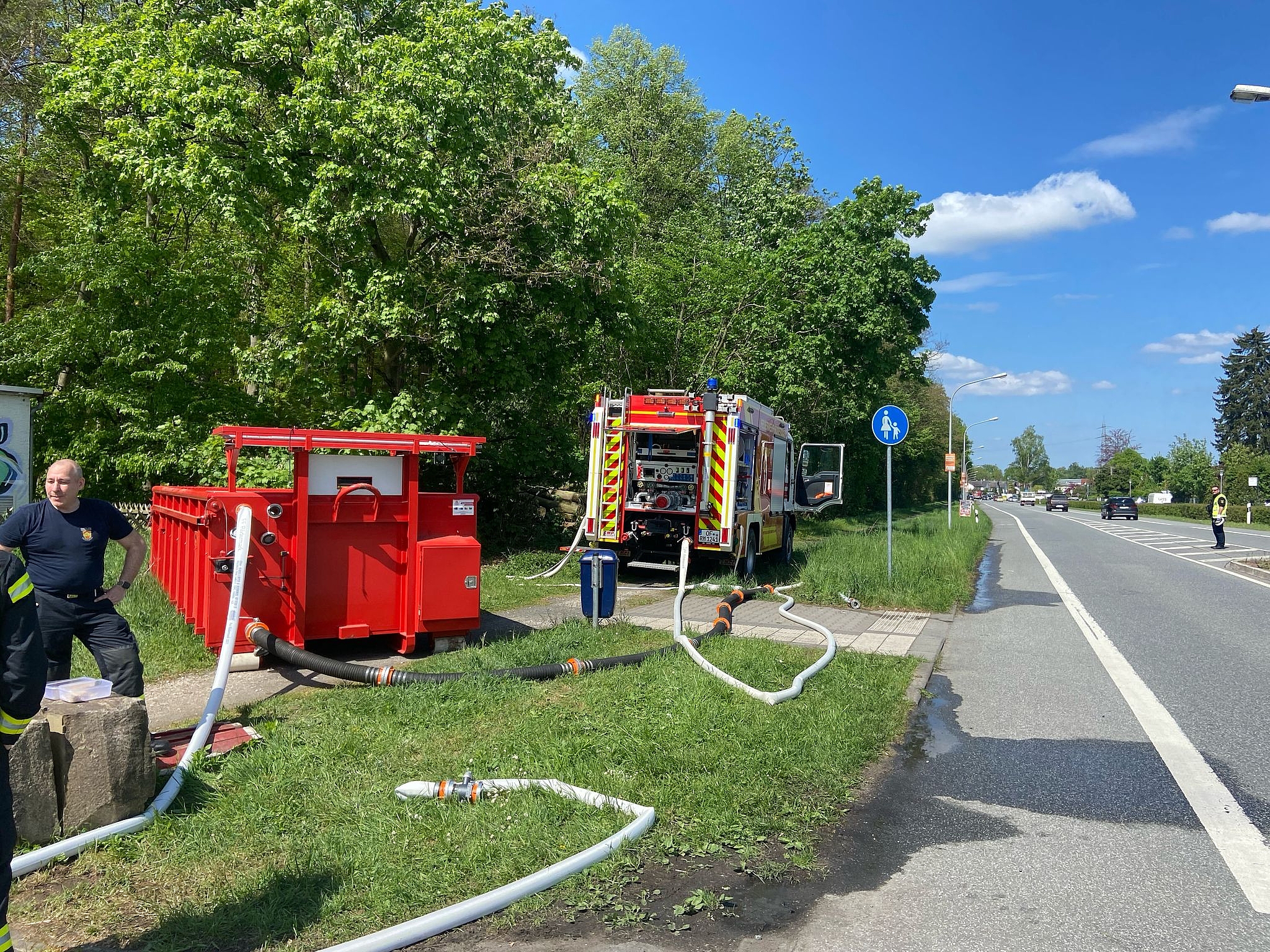 Eine Besonderheit war auch die Luftunterstützung durch einen Helikopter der Polizei, der durch den Abwurft von Wasser aus einem "Bambi-Bucket" unterstützte.
