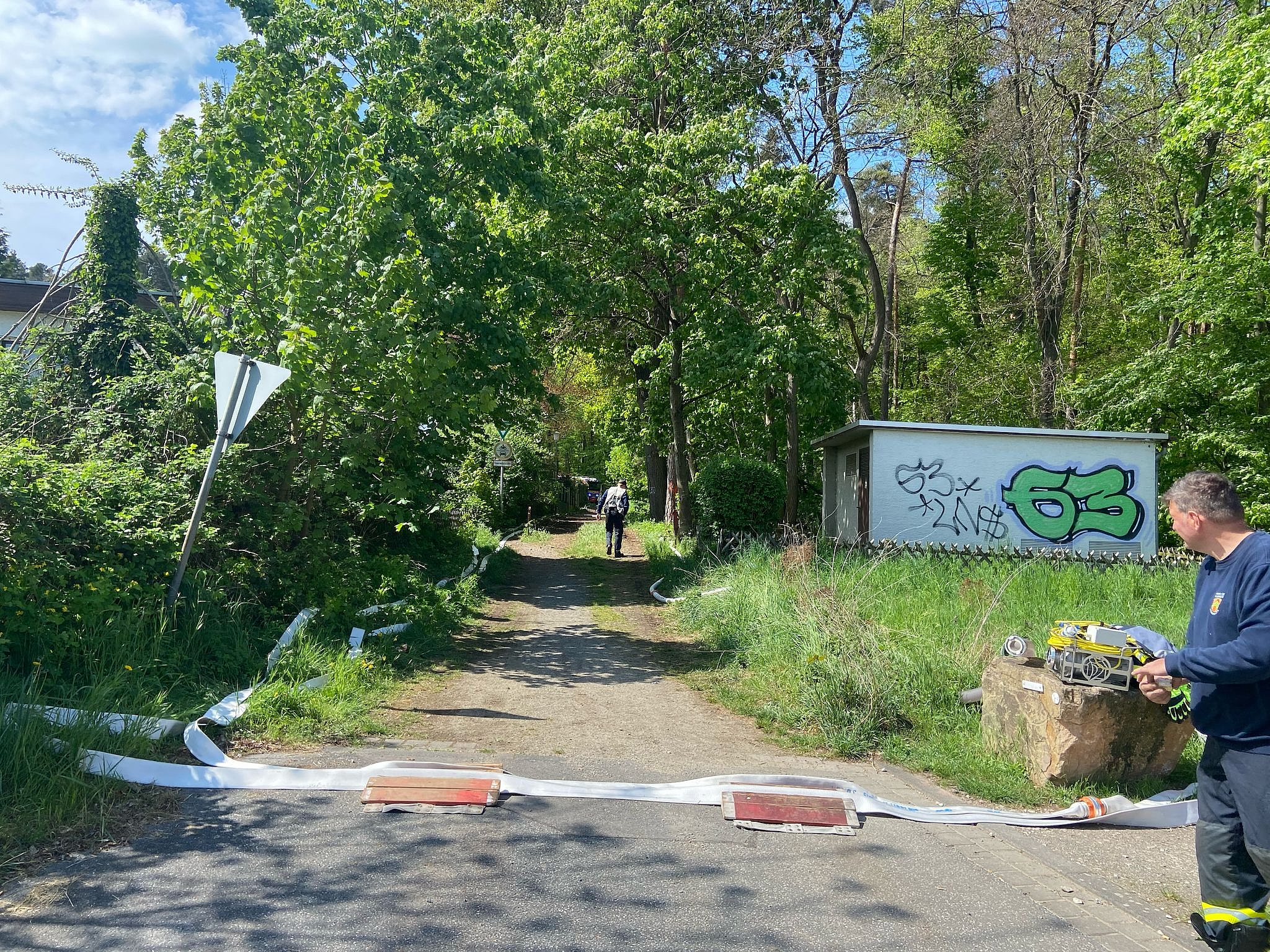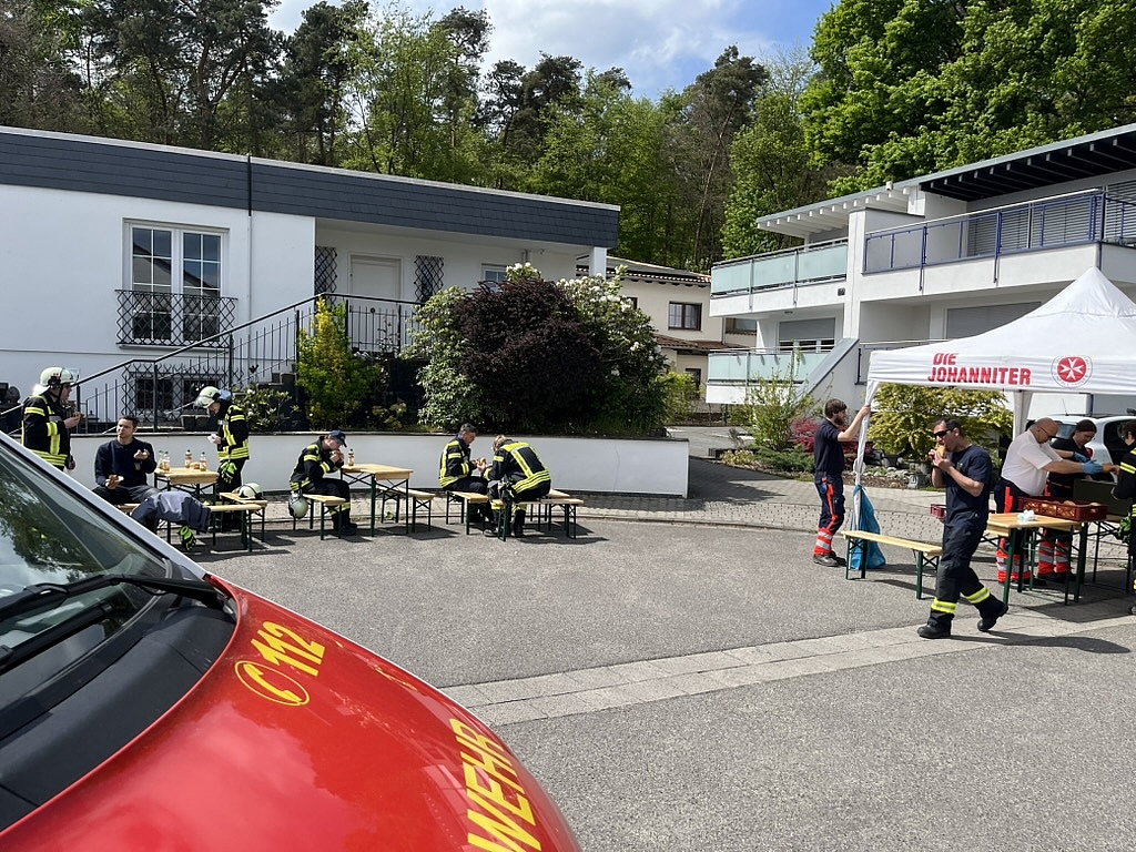 Ebenfalls waren die Betreuungszüge auf dem Hof, um die Verpflegung der Einsatzkräfte sicherzustellen. Die KameradInnen der Hilfsorganisationen fuhren mit ihren Fahrzeugen direkt an die Einsatzabschnitte, stellten Zelte und Bänke auf, um die Feuerwehrleute mit Getränken und Essen zu versorgen.