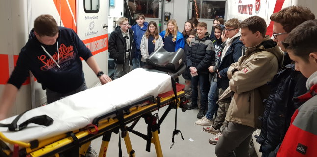 Der Rettungswagen, der für Primäreinsätze wie beispielsweise Verkehrsunfälle oder internistische Notfälle genutzt wird und der Infektionskrankenwagen für Sekundäreinsätze wurden den Jugendlichen gezeigt und fanden große Begeisterung. Die neuen Eindrücke und die Arbeitsmaterialien hinterlassen gewiss Eindruck, sodass wir uns herzlich bei der Johanniter-Unfall-