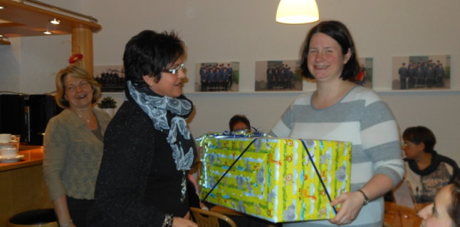 Auch das gehört zum Frauentreff.: Einfach einmal in gemütlicher Runde zusammen sitzen. Ein Schwätzchen halten. Ein Gläschen Saft, oder Sekt und in diesem Fall gab es noch die Gelegenheit unserer frisch gebackenen Mama Melanie ein kleines Präsent zur Geburt ihres Sohnes zu überreichen.