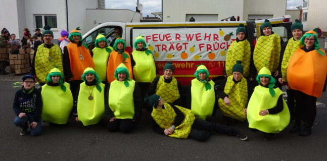 Mit der Teilnahme am Ober-Rodener Rathaussturm und dem Rosenmontagszug durch Urberach endet die närrische Zeit für die Ober-Rodener Feuerwehr. Traditionell übernahm die Feuerwehr die Bewirtung der Narren, direkt am Ober-Rodener Rathaus. Mit Chili aus der Gulaschkanone, Rindswurst und Brötchen, sowie Getränken von alkoholfrei bis hochprozentig. Dieses Jahr war die Feuerwehr bei beiden Veranstaltungen auch als Zugnummer vertreten. Unter dem Motto „Feuerwehr trägt Früchte“ wurden, von den als Früchte verkleideten Teilnehmerinnen und Teilnehmern, Fruchtsäfte an die Helau rufenden Narren verteilt. Der Lohn vieler Stunden Bastelarbeit für Kostümierung und Plakate waren die fröhlichen Gesichter der Feiernden.